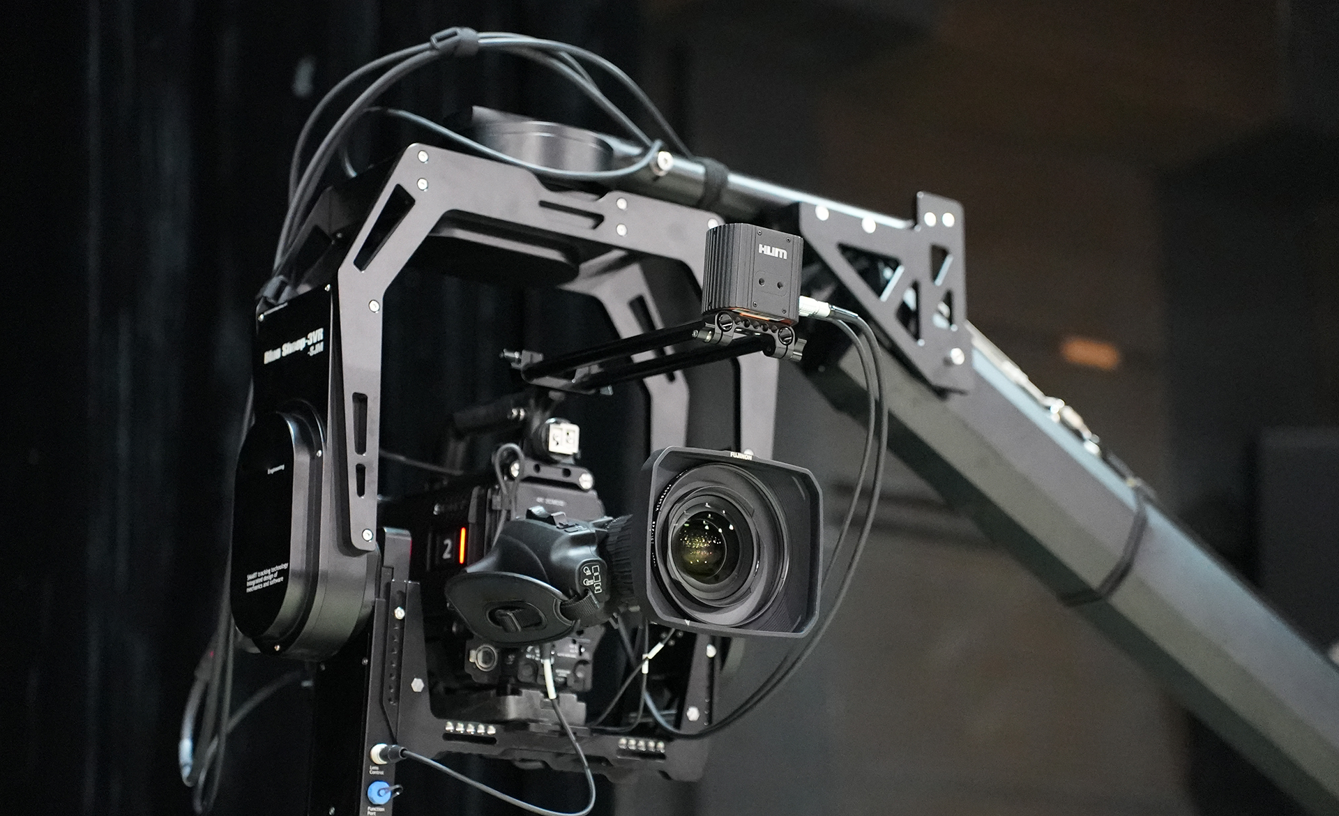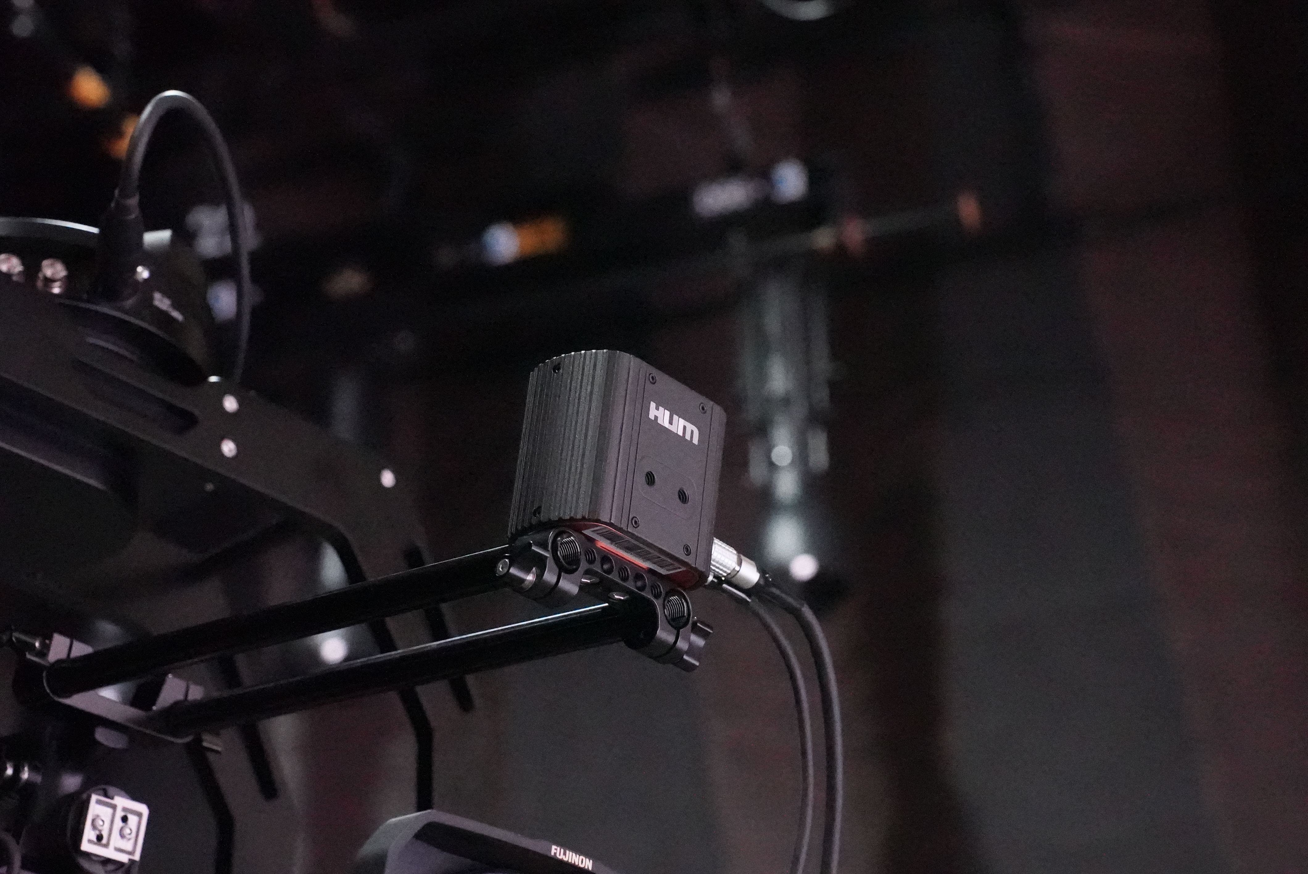 此次演播室搭建选用了HUM PROMAX-I红外光学摄像机追踪系统,该系列可以处理复杂的灯光系统及光线环境,8可红外灯珠可以扫描到0-20米的棚高上的反光贴,经过精密的计算,为暗场环境提供稳定精准的位姿信息,是XR系统中非常重要的一环。